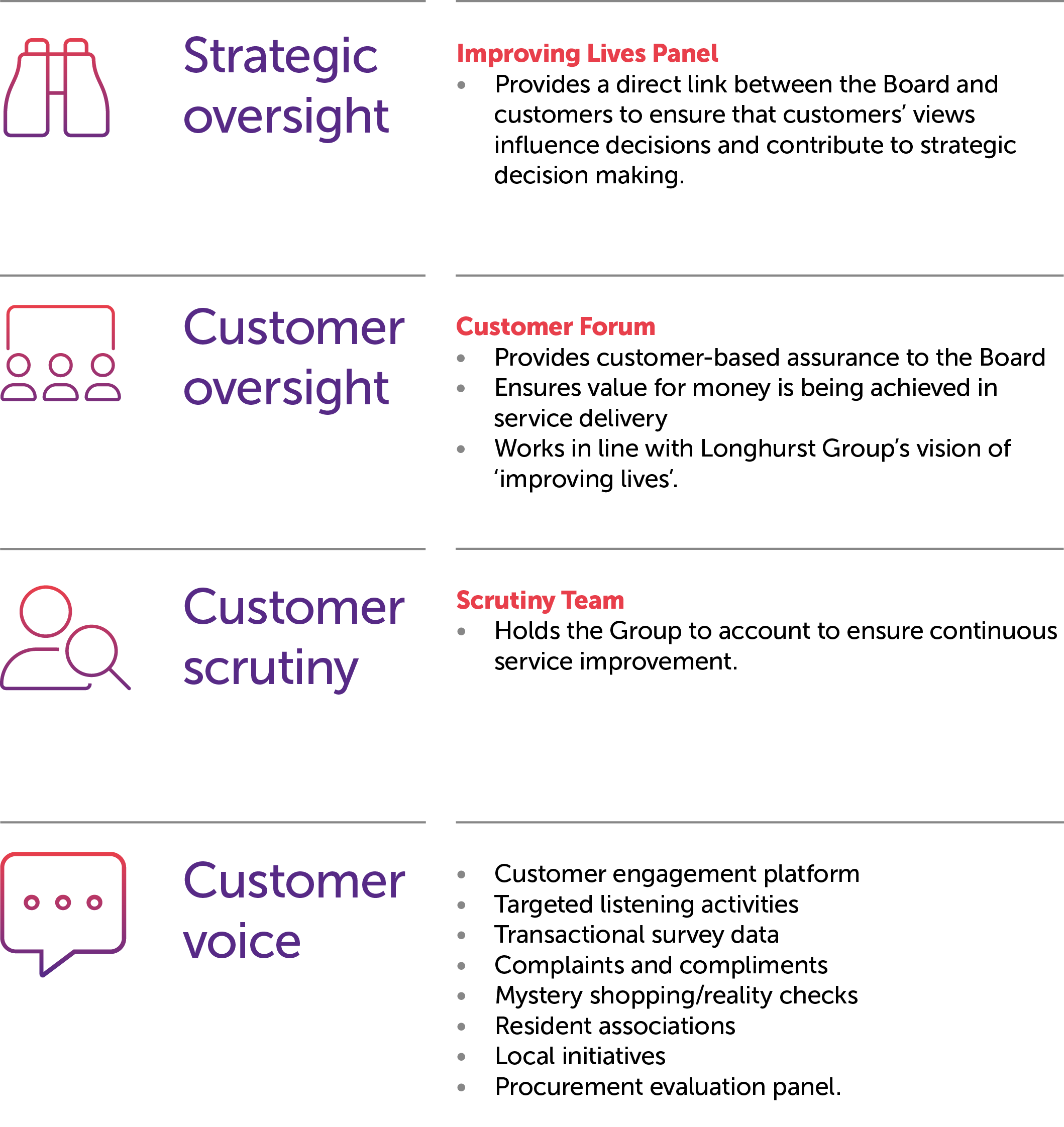 Customers of all tenures are encouraged to co-create with colleagues at Longhurst Group on matters of policy, strategy, and service delivery. The Customer Forum meet as a virtual group, offering insights and perspectives to policies and performance from a customer-centric viewpoint.
