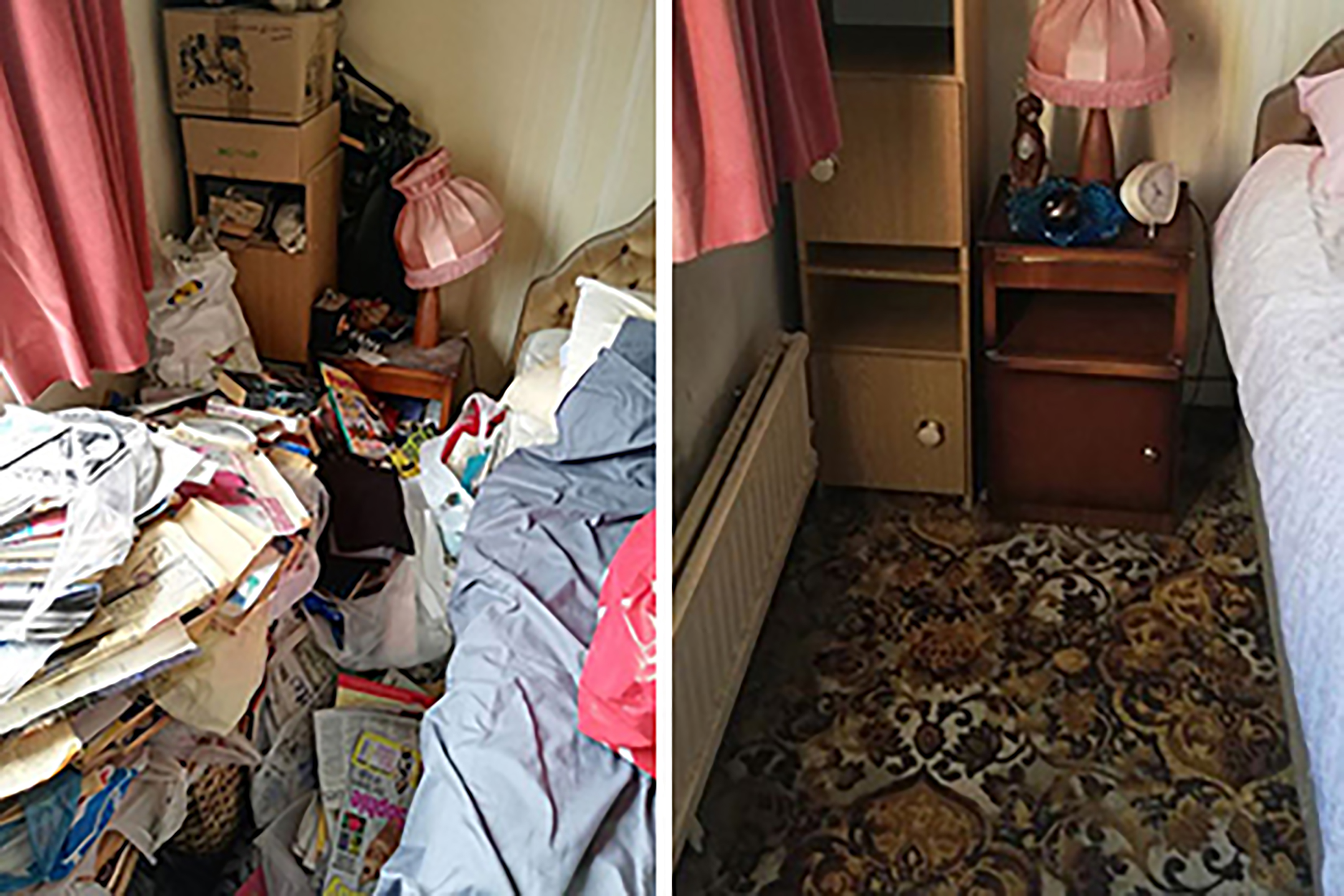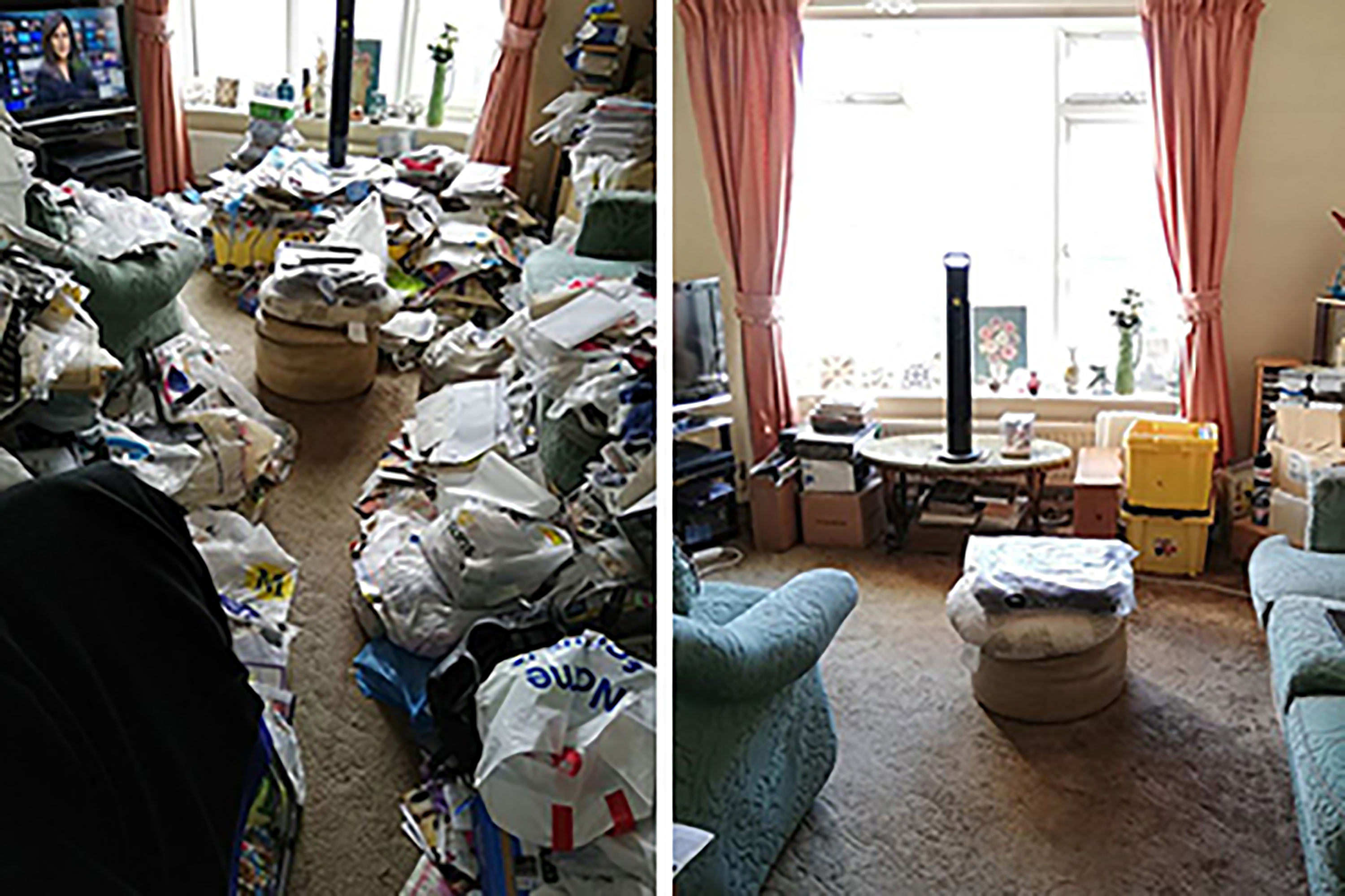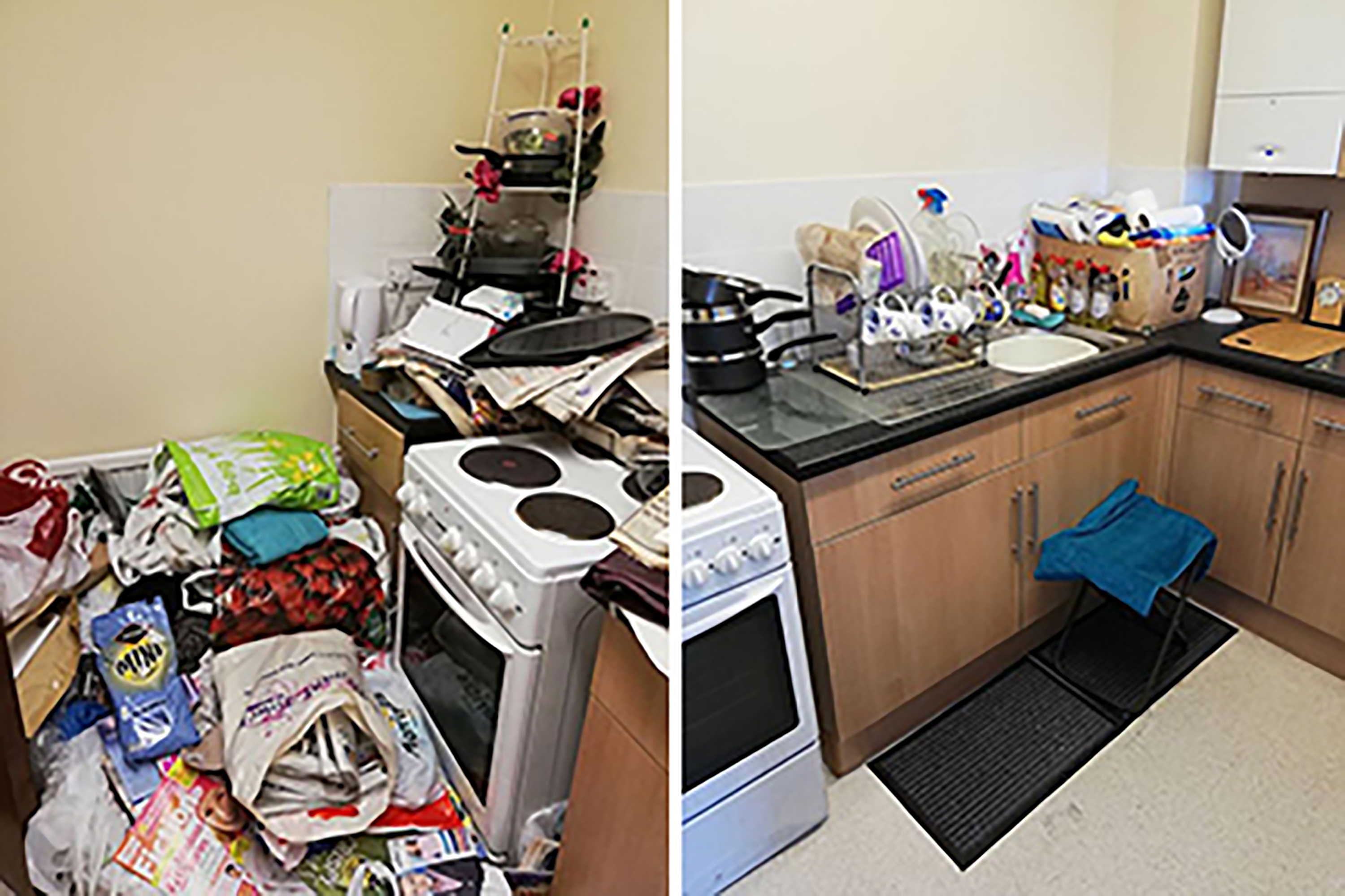 The flat had become overrun with belongings including newspapers, books and other items. Sofas were not able to be sat on, the kitchen was almost out of bounds and the bedroom was not able to be used for sleeping.