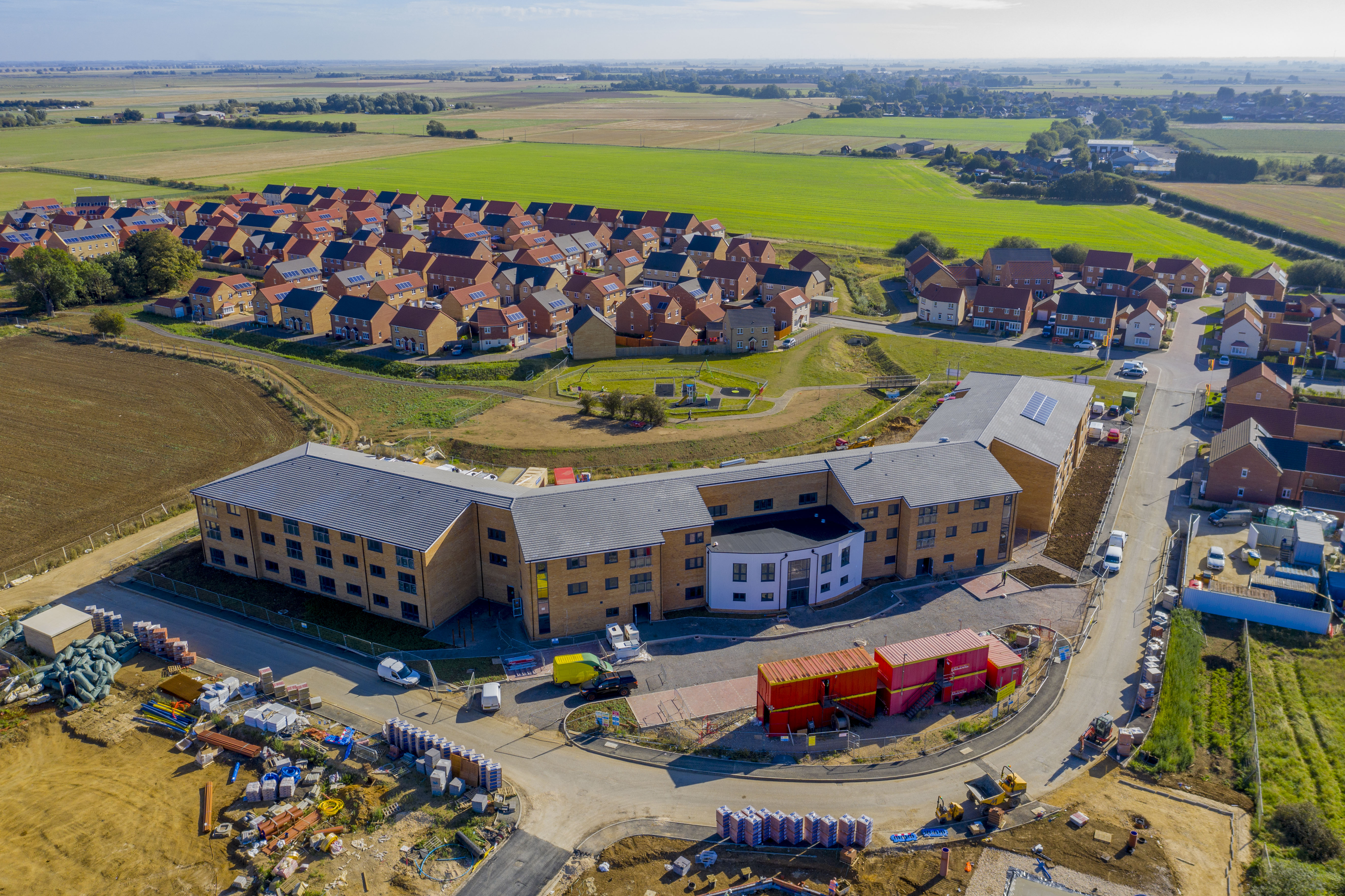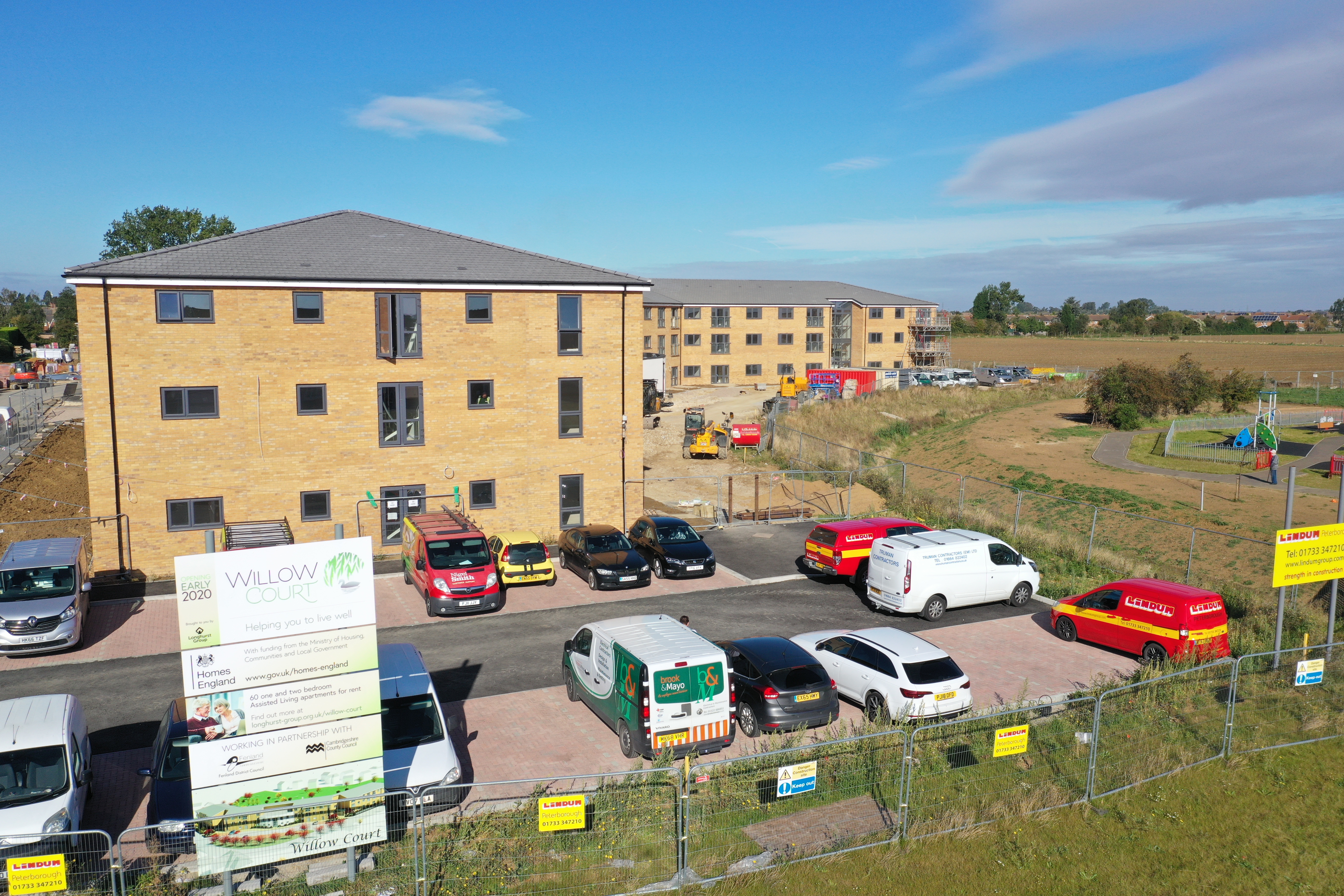 Drone images show the progress at Willow Court in Whittlesey, which is being delivered by leading housing provider Longhurst Group, in partnership with construction firm, Lindum Group.