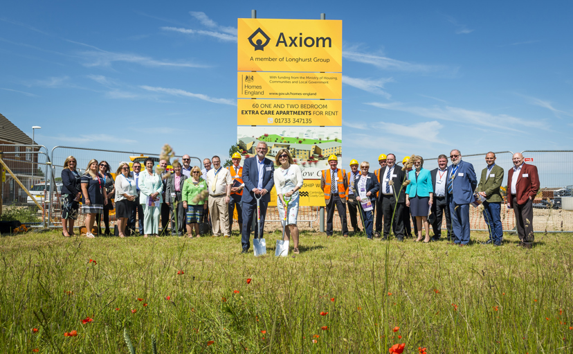The start of work at the site was celebrated with a sod-cutting event, attended by key figures from Longhurst Group, Lindum and Axiom as well as local councillors, dignitaries and care providers.