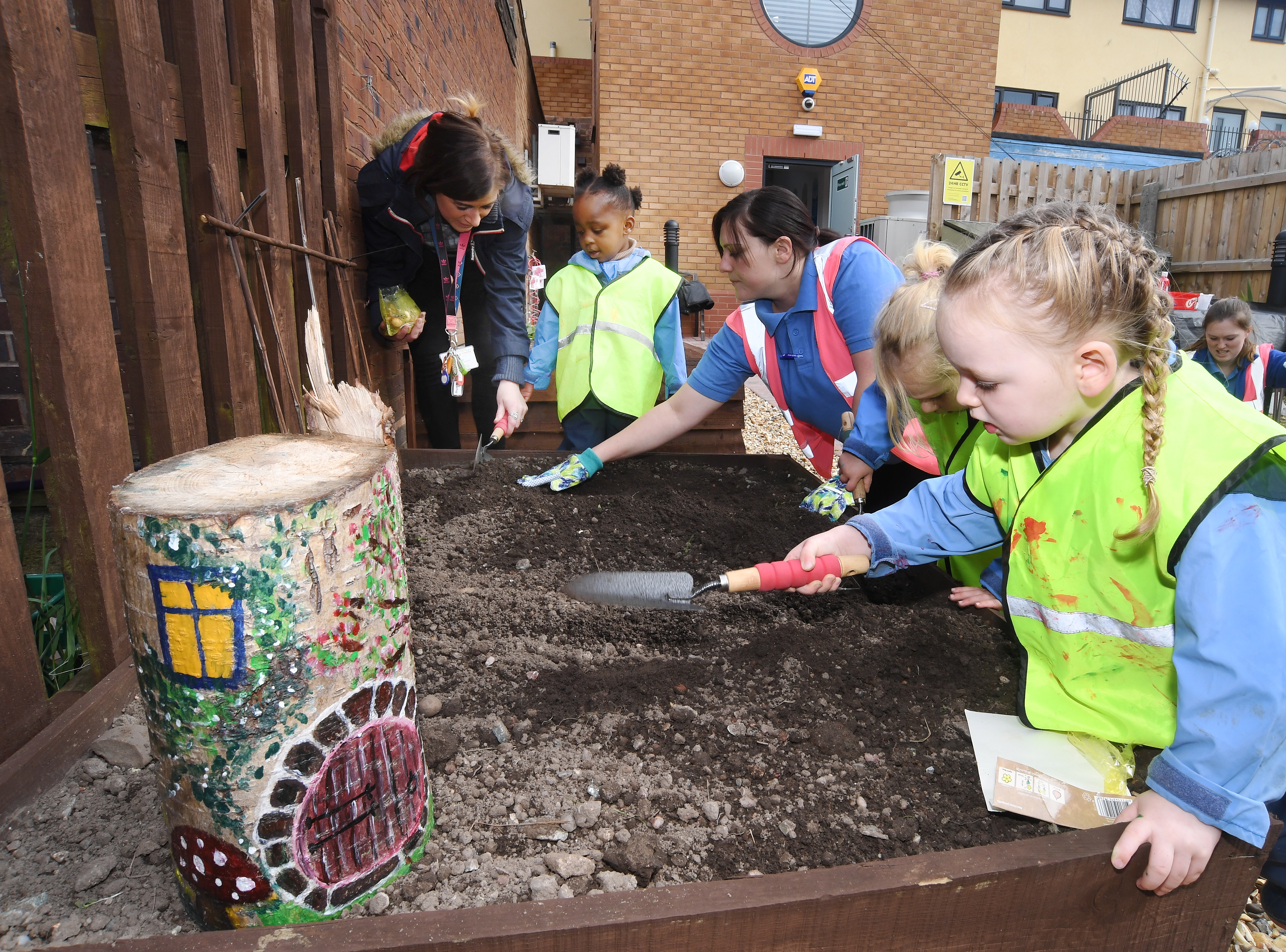 For Housing Day they took the opportunity to involve the nursery children in painting plant pots in the garden and planting Daffodil bulbs ready for Spring.