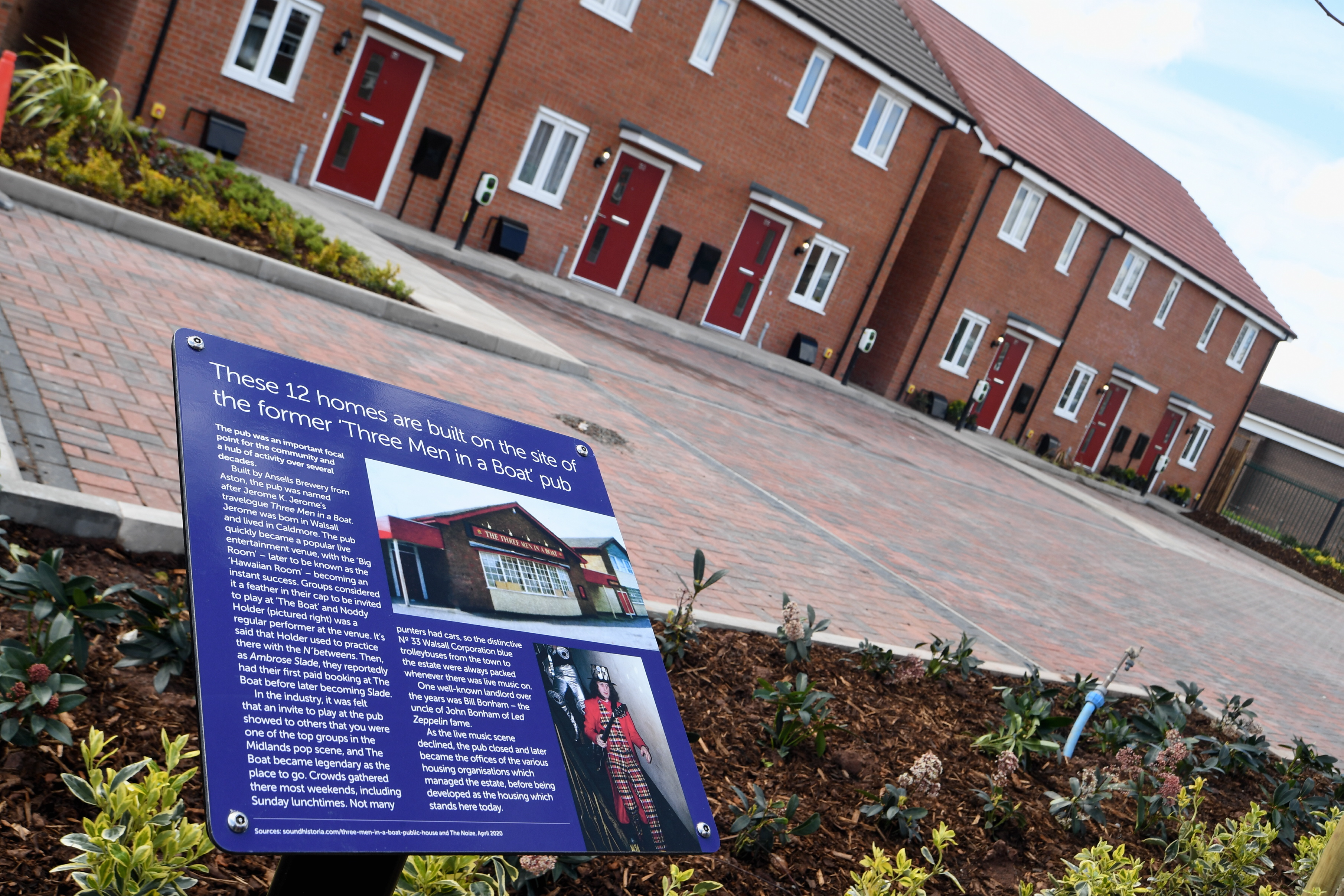 As well as delivering the new homes, we’ve also unveiled a commemorative sign at the site marking its history as the former The Three Men in a Boat pub and the important part it played in the West Midlands music scene.