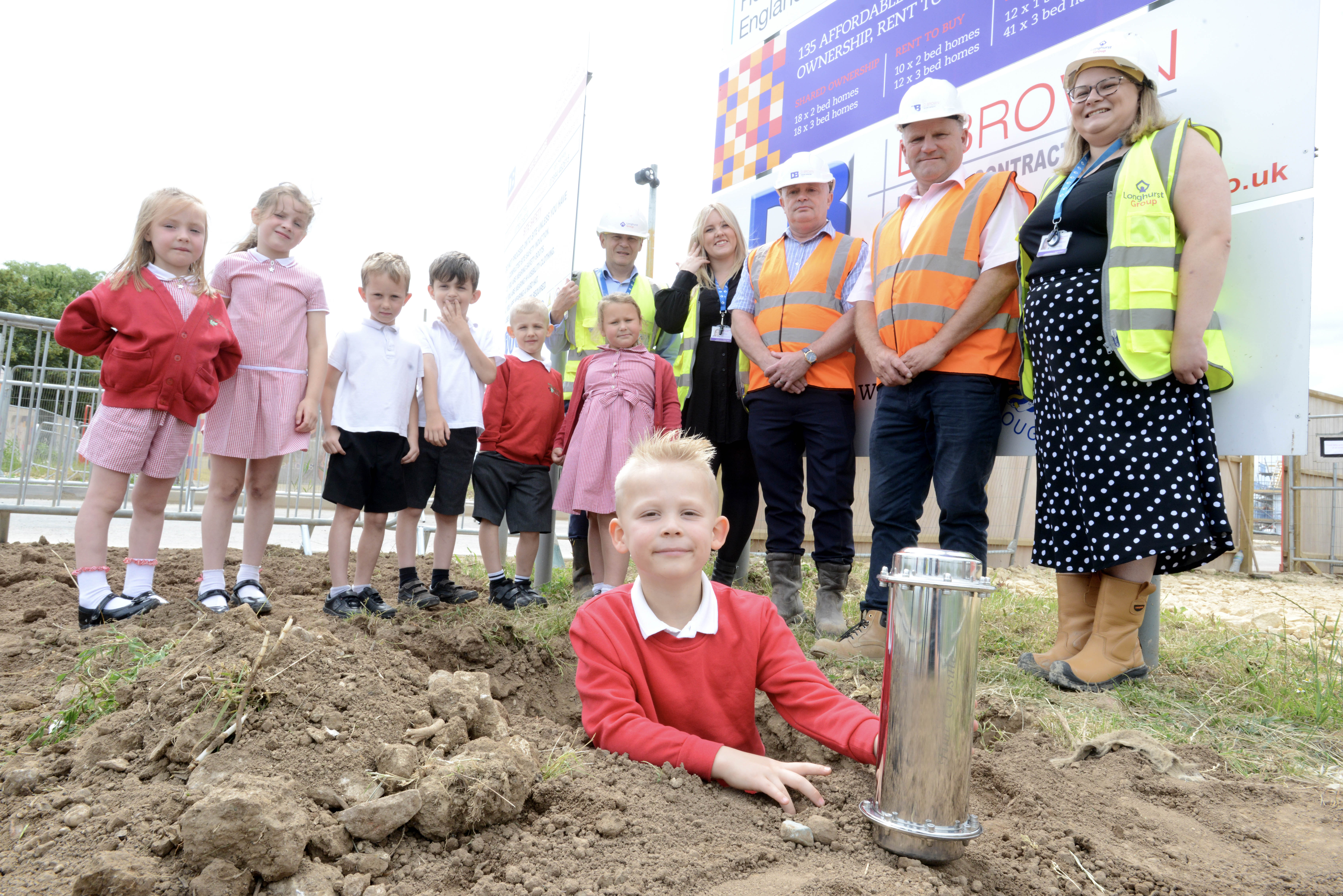 Pupils from a primary school in Boston have buried a time capsule on the site of our new housing development in the town.