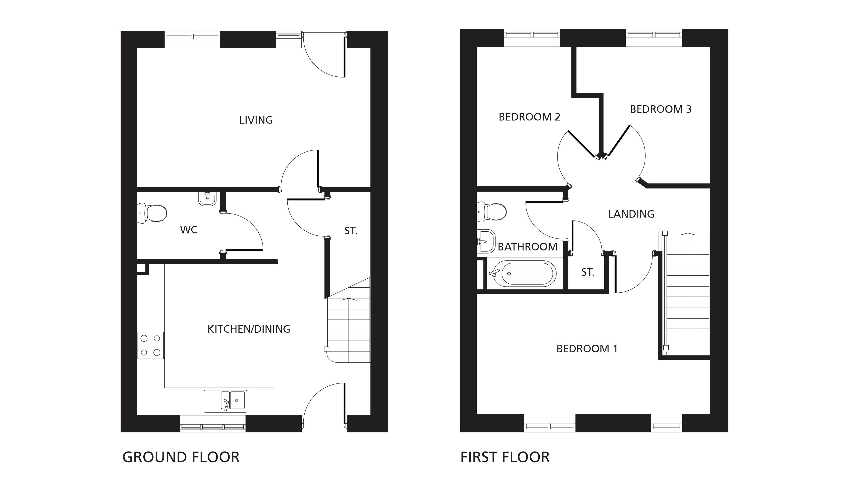 The front door of this home opens on to the the modern kitchen/dining room, with its built-in oven, hob and hood. From there is the lounge, with a door that opens on to the rear enclosed garden, which will be freshly turfed. The ground floor also boasts a downstairs WC.Â