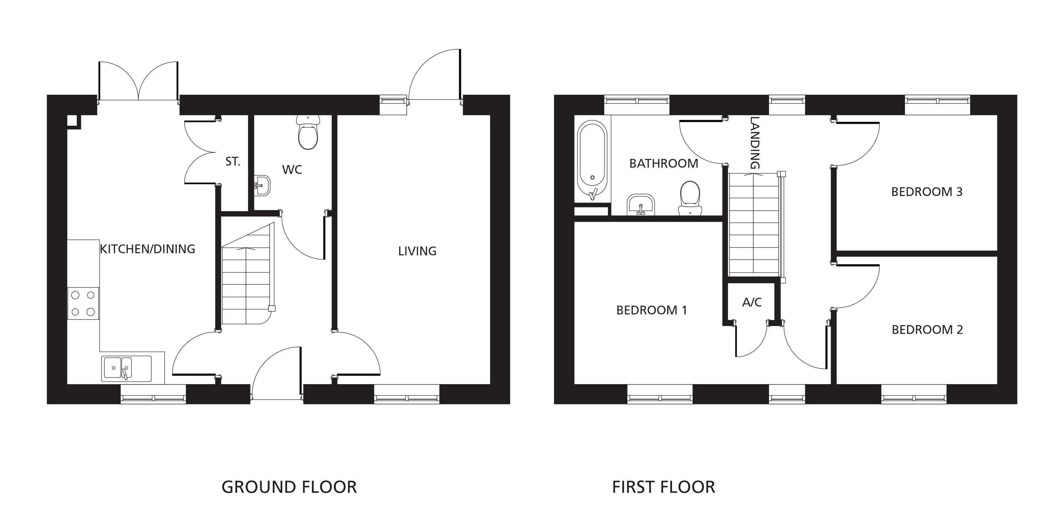 The front door of this home opens on to the hall, which leads on to the modern kitchen/dining room, with its built-in oven, hob and hood and the lounge, with a door that opens on to the rear enclosed garden, which will be freshly turfed. The kitchen/dining room also has French doors that opens on to the garden. The ground floor also boasts a downstairs WC.Â