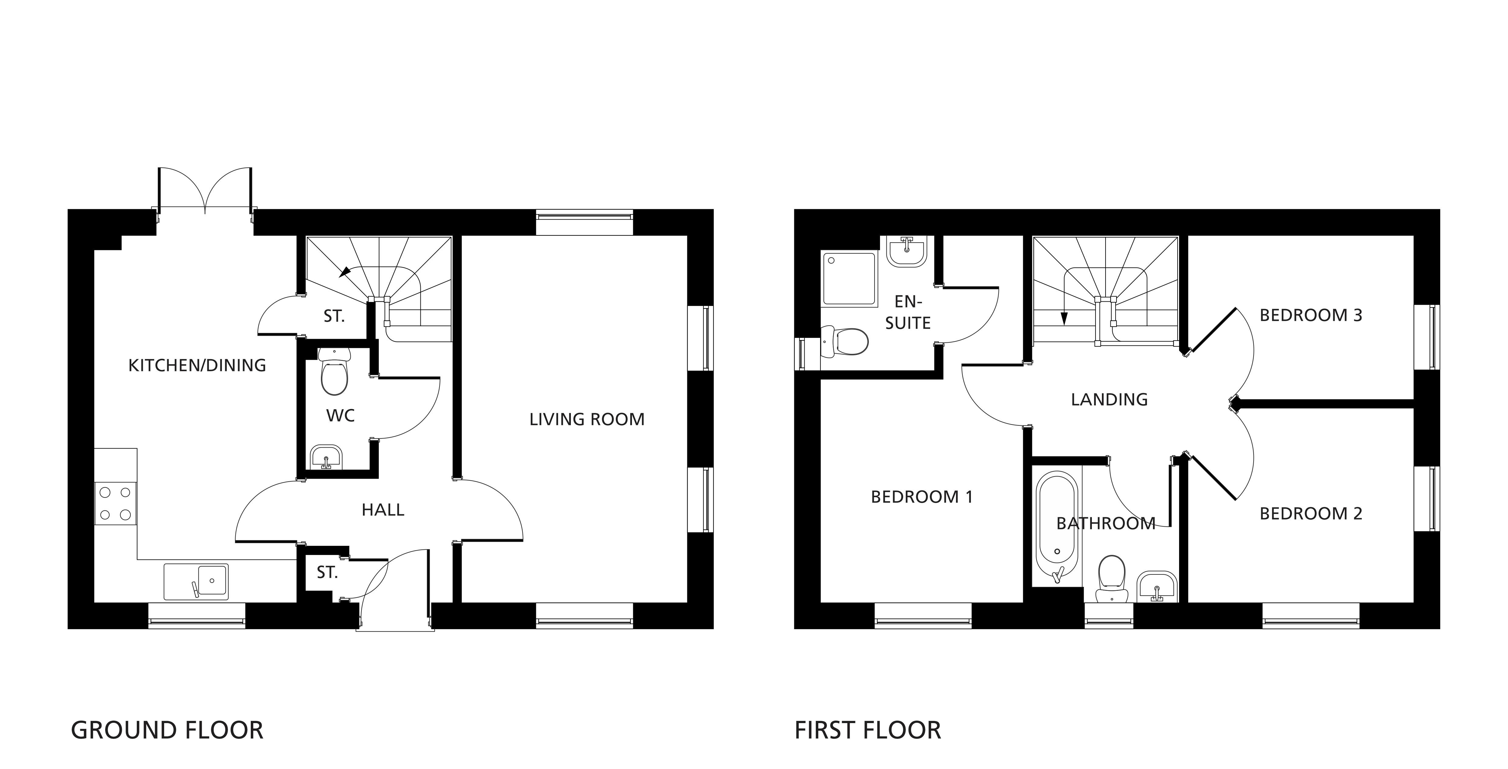 The front door of this home opens into the hall and from there is the lounge and kitchen/dining room. The modern kitchen, has a built-in oven, hob and hood. The French doors leads out to the rear enclosed garden, which will be freshly turfed. The ground floor also boasts a downstairs WC.Â