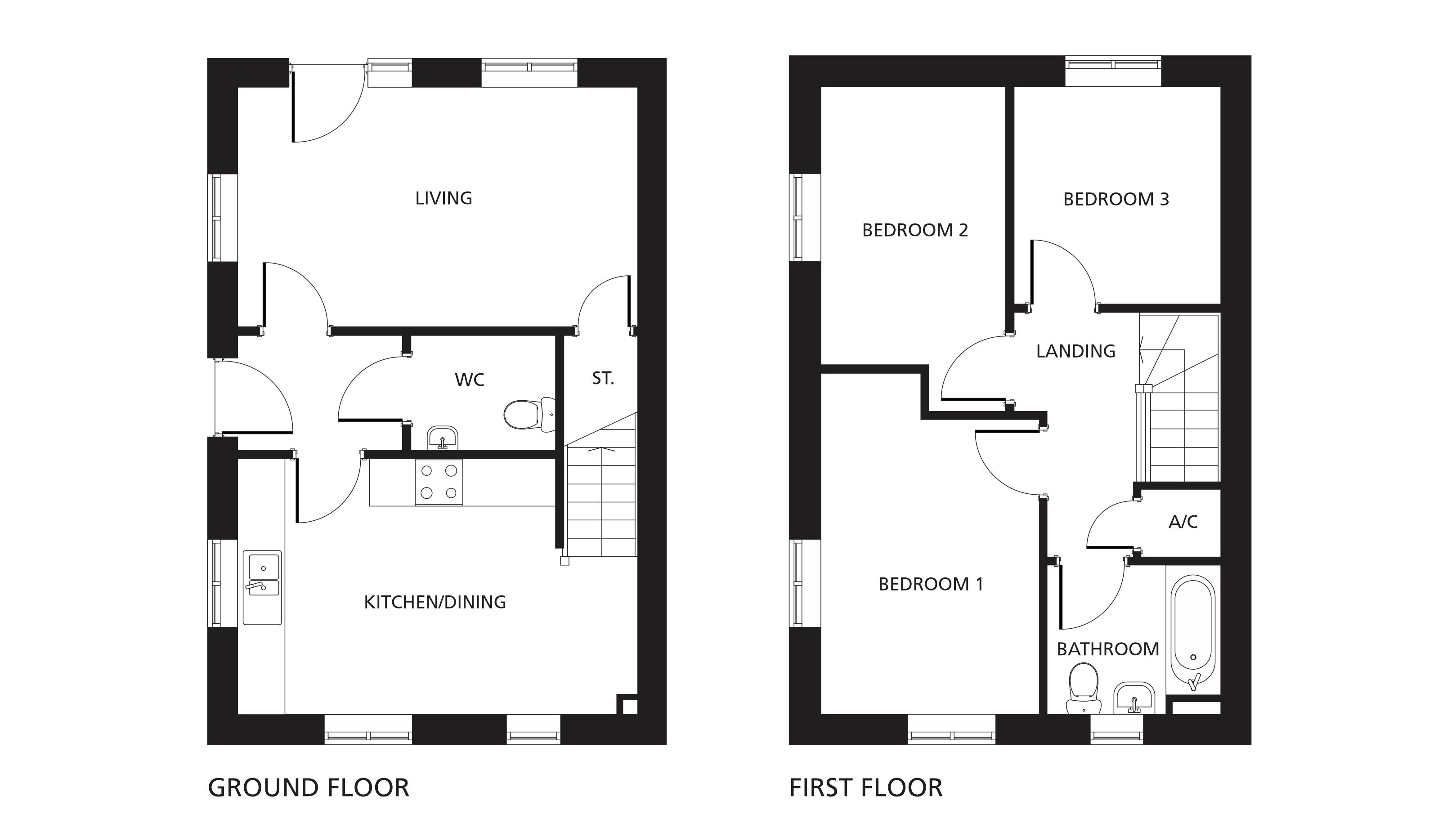 The front door of this home opens on to the hall, which leads on to the modern kitchen/dining room, with its built-in oven, hob and hood and the lounge, with a door that opens on to the rear enclosed garden, which will be freshly turfed. The ground floor also boasts a downstairs WC.Â
