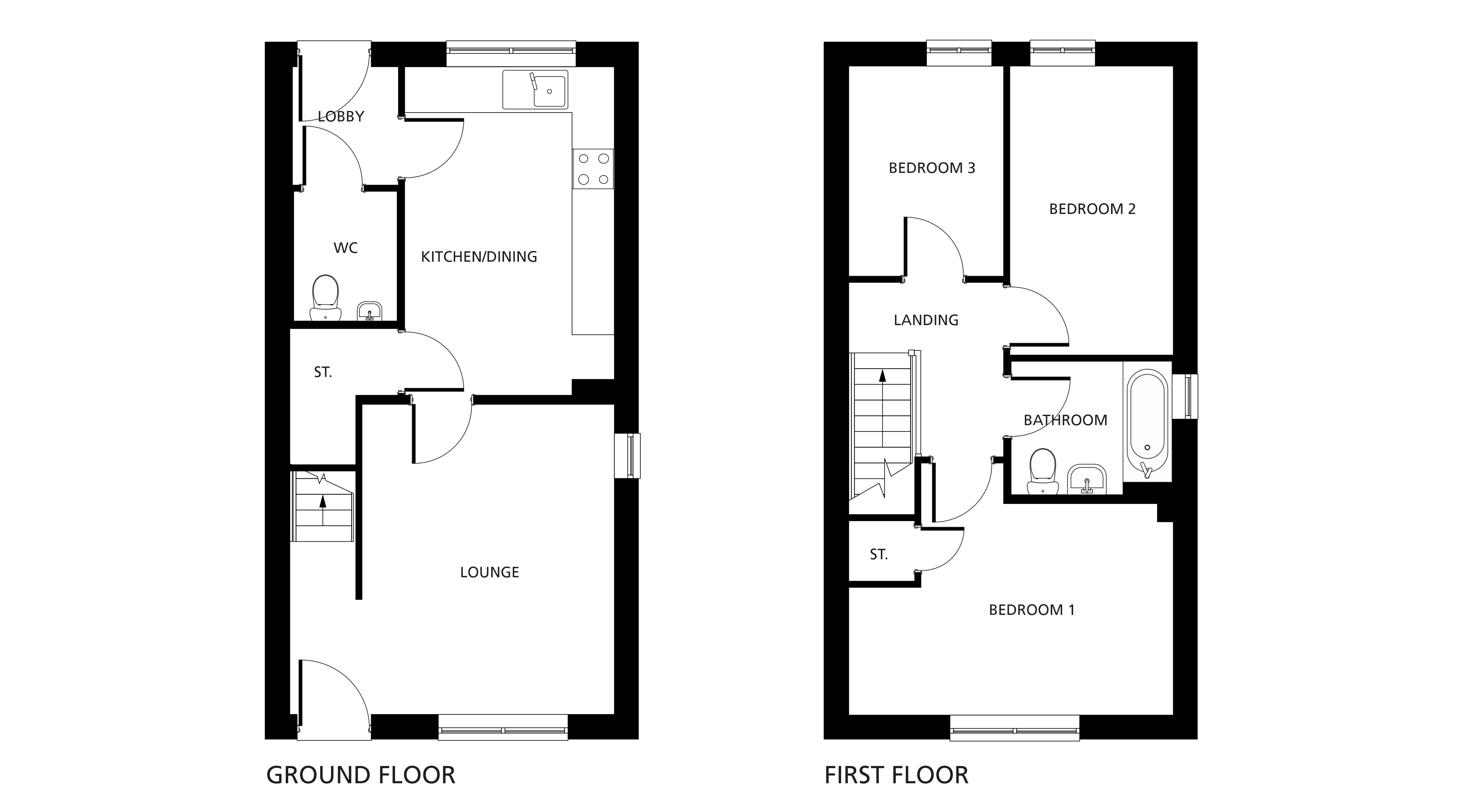 The front door of this home opens into the lounge and from there is the kitchen/dining room. The modern kitchen, has a built-in oven, hob and hood. The back door leads out to the rear enclosed garden, which will be freshly turfed. The ground floor also boasts a downstairs WC.Â